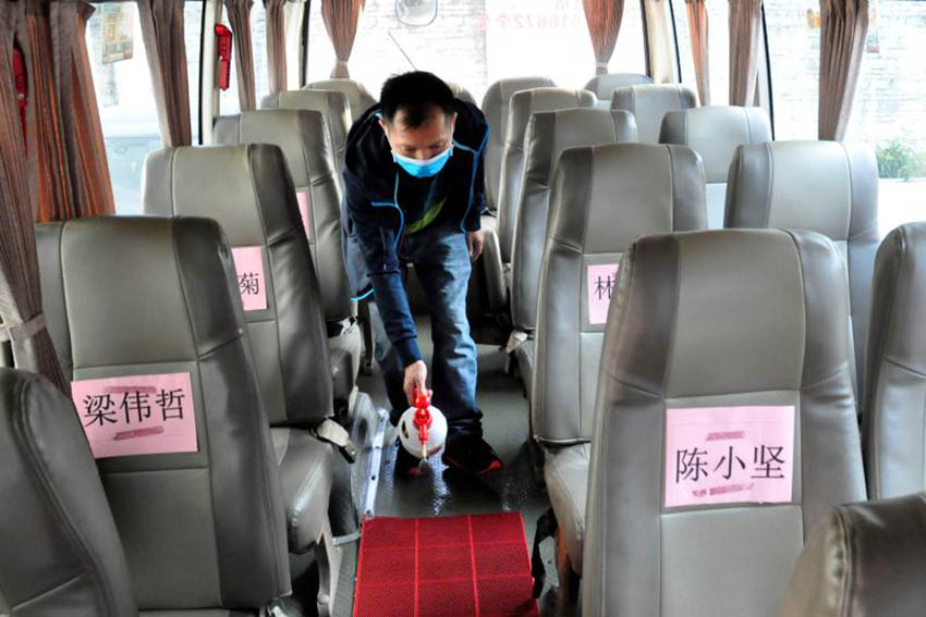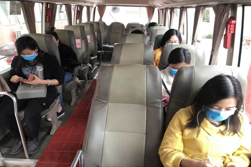 Employees taking the shuttle bus should wear masks throughout the journey and take seats in accordance with the seat arrangement